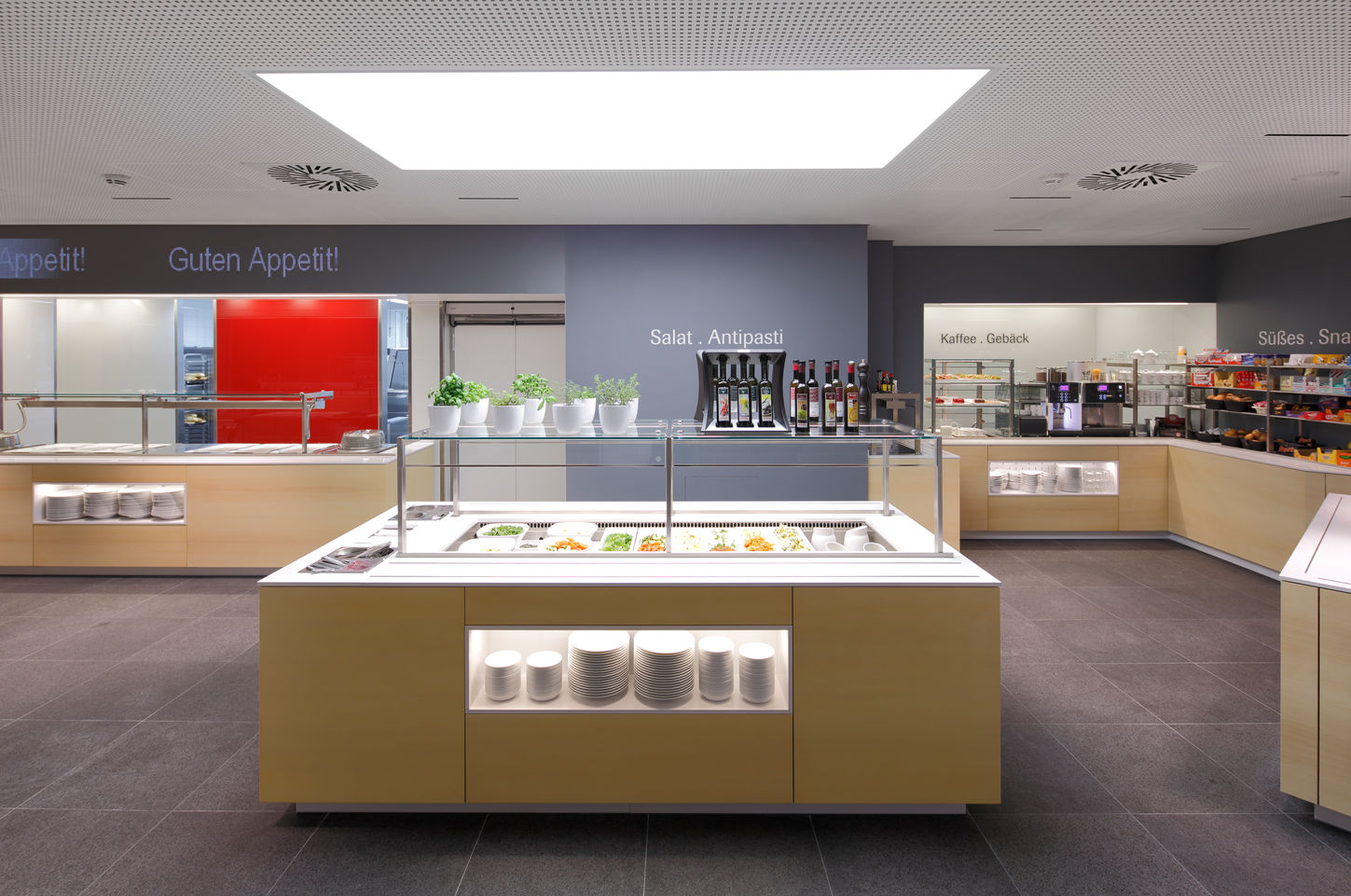 Der Umbau macht die Kantine zu einer modernen Arbeitswelt-Komponente, die Austausch und Pausen ermöglicht und eine funktional optimierte, präzise realisierte Unternehmensgastronomie darstellt.